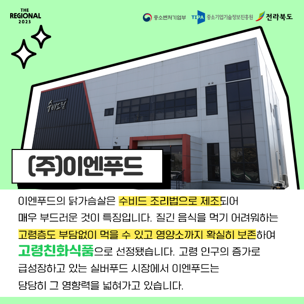 (2023 지역특화/전북) 수비드 조리법으로 닭가슴살의 새 지평을 열다((주)이엔푸드)