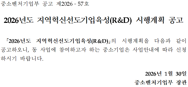 2026년도 지역혁신선도기업육성(R&D) 시행계획 공고