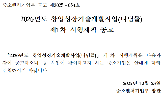 붙임1_(공고_제2025-654호)_2026년도 창업성장기술개발사업(디딤돌) 제1차 시행계획 공고.hwp
