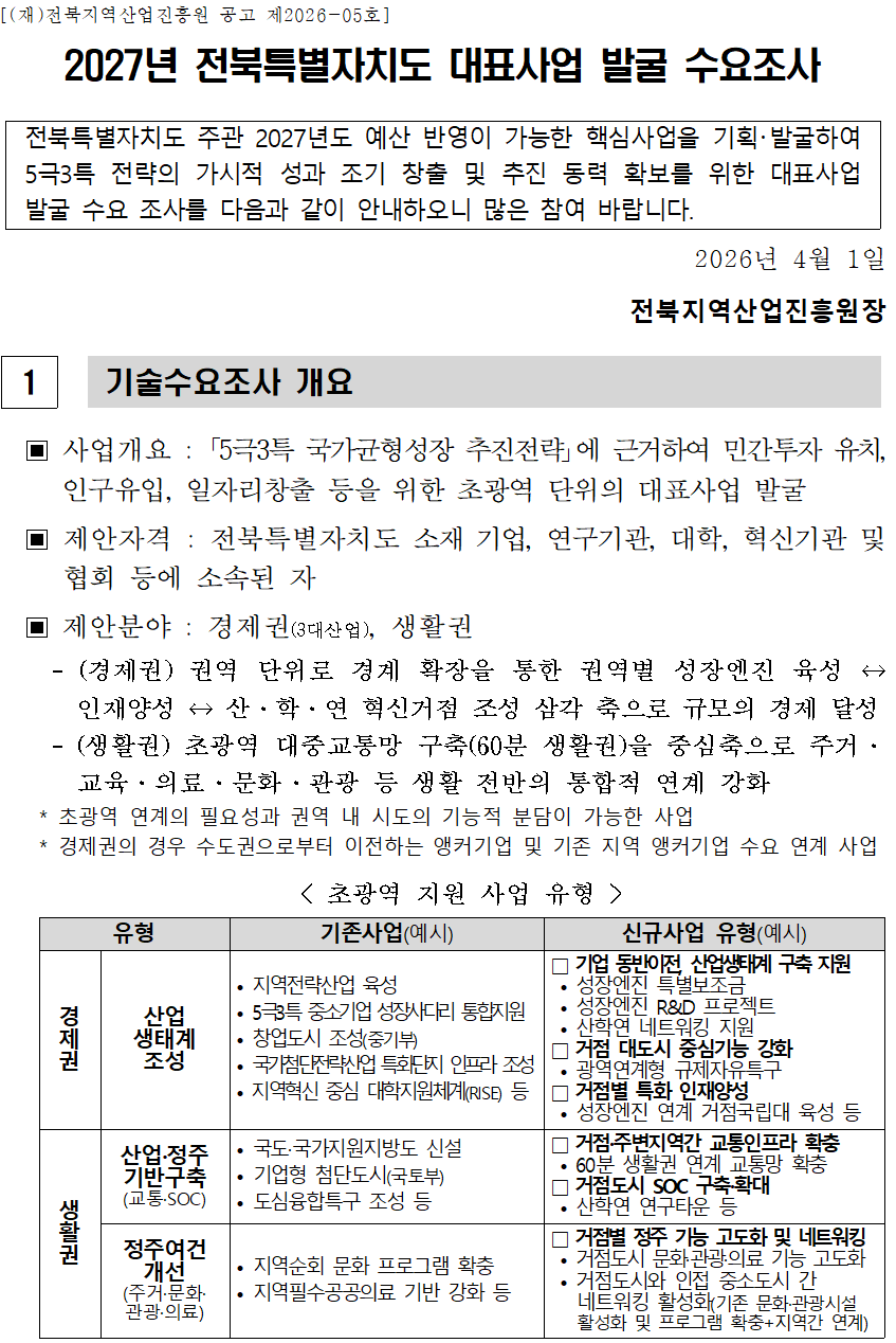 2027년 전북특별자치도 대표사업 발굴 수요조사
