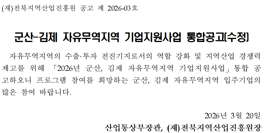 [붙임1] 2026년 군산-김제자유무역지역기업지원사업 통합 공고문(수정).hwp