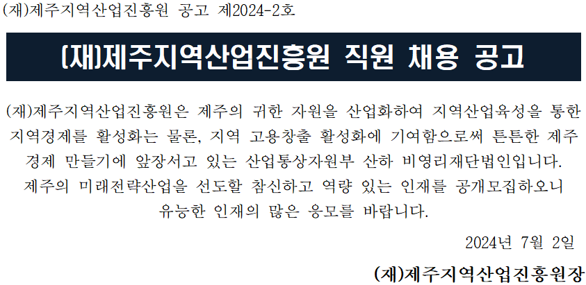 붙임. 2024년 제주지역산업진흘원 직원 채용 공고문-최종.hwp