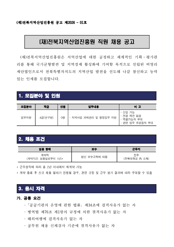 (재)전북지역산업진흥원 직원 채용 공고